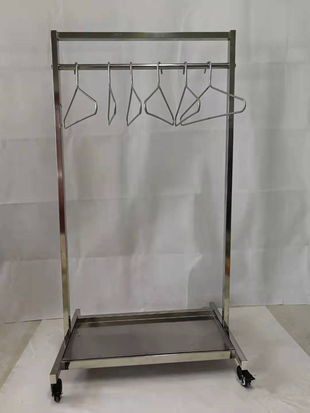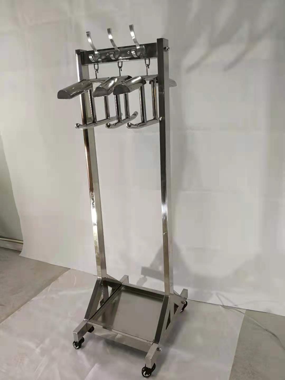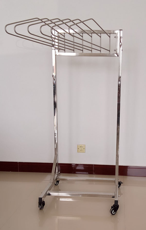 铅衣架包括四个万向脚轮、支座、支架,主要用途用于悬挂射线防护服,由于防护服内部是有效的铅橡胶材料,长时间的弯折会使铅橡胶产生裂痕,严重影响铅衣的防护效果,而用铅衣架悬挂能使铅衣保持平顺,有效防护裂痕的产生,有效延长铅衣防护服的寿命。由于铅衣较重,普通的铅衣架无法承受其重量,所以要用专用的铅衣架。
